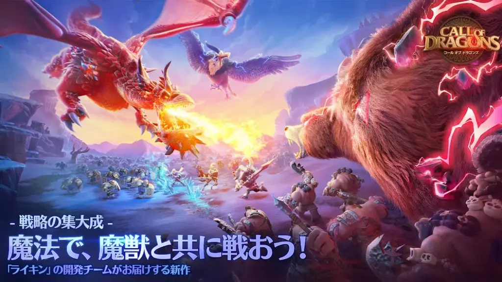 コール オブ ドラゴンズで戦略バトル&ビヒモスを極めよう! リアルタイム戦略バトルで一歩リードしよう! 「コール オブ ドラゴンズ」はリアルタイムで繰り広げられる戦略バトルが魅力のゲームです!魔法ユニットや騎兵、弓兵、歩兵など多彩な部隊を指揮... -